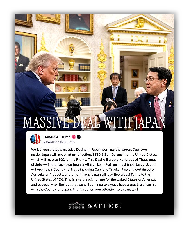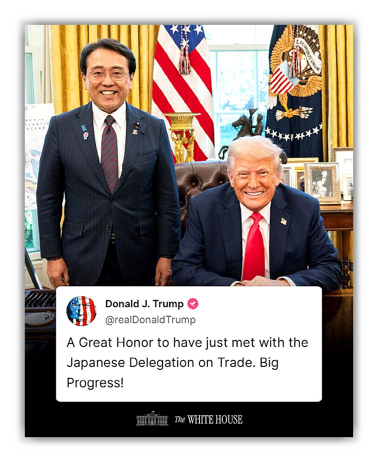 ์ผ๋ณธ์€ ๋Œ€๊ทœ๋ชจ ํˆฌ์ž๊ณ„ํš์œผ๋กœ ์œ ๋ฆฌํ•œ ๊ณ ์ง€๋ฅผ ์„ ์ ํ–ˆ๊ณ , EU๋Š” ํ˜‘์ƒ ์ดˆ๊ธฐ์— ๋น„๊ต์  ์•ˆ์ •์  ํ˜‘์ •์„ ๋งบ์€ ์ƒํƒœ์ž…๋‹ˆ๋‹ค. ํ•œ๊ตญ์€ ํ˜„์žฌ ‘๋ง‰ํŒ ๋’ค์ง‘๊ธฐ’๊ฐ€ ํ•„์š”ํ•œ ์ƒํ™ฉ์ž…๋‹ˆ๋‹ค.